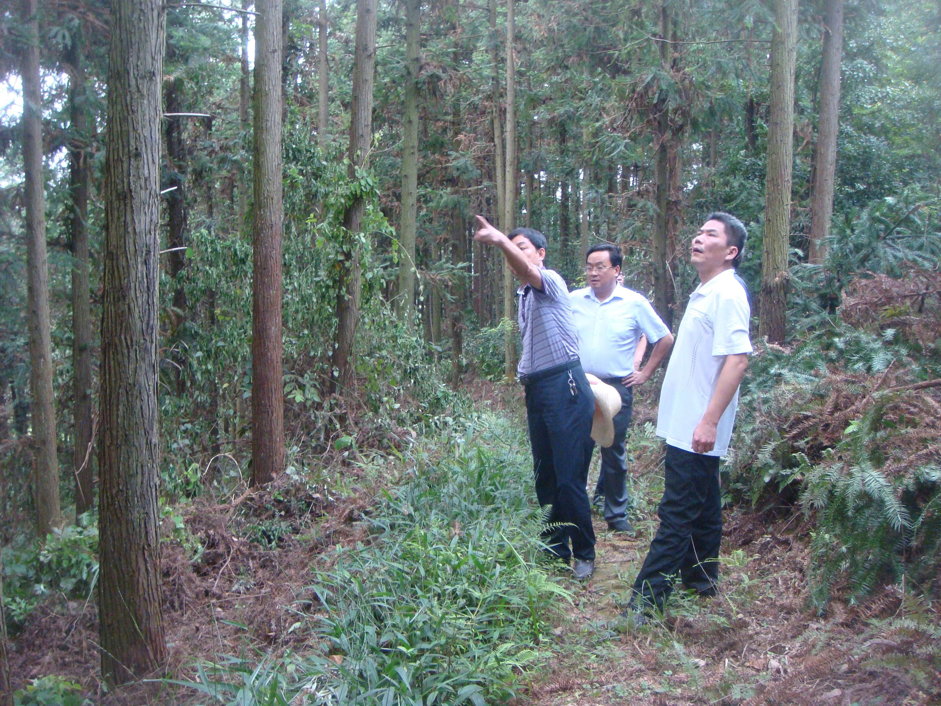 716日,吉安市林业局局长黄春就杉木大径材培育到我场进行工作调研。图为:场党委书记聂煜、场长刘晖陪同黄春局长实地察看东毛坑分场洋丰坳杉木大经材示范林。